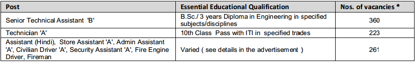 No. of Vacancies : 844 vacancies